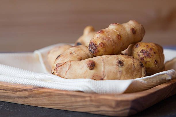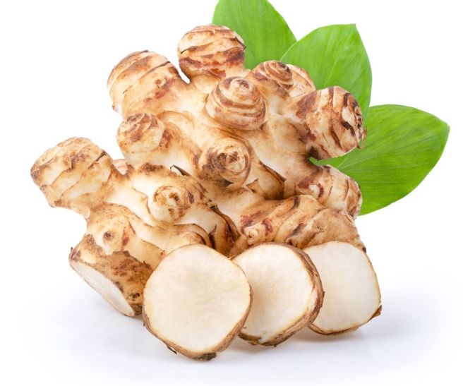 천연 인슐린이라 부르는 이눌린의 함량은 일반 감자의 80배 이상으로 몸 전체의 55% 정도의 비율을 차지하고 있습니다. 이 성분이 인슐린의 정상 수치를 유지하도록 도와줍니다 이눌린은 위와 소장에서 분해, 흡수되지 않고 대장에서 소화되는 특징을 가지고 있으기 때문에 혈당 상승을 느리게 하여 혈당 수치가 높거나 당뇨를 앓고 있는 환자에게 도움이 됩니다.