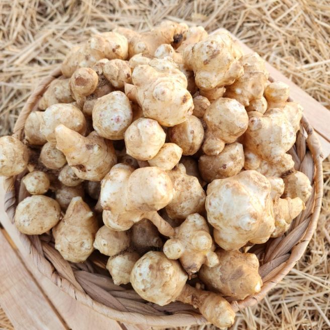 돼지감자에 함유된 이눌린 성분은 몸속에서 칼슘 흡수를 도와 뼈를 지켜주며 튼튼하게 해주는 역할을 하게 되어 뼈 건강에 이로움을 줍니다. 성장기 어린이들 성장과 골격 발달에 이로움을 주고 중장년층의 골절 및 골다 공증에 탁월한 효과가 있습니다.고 해요.