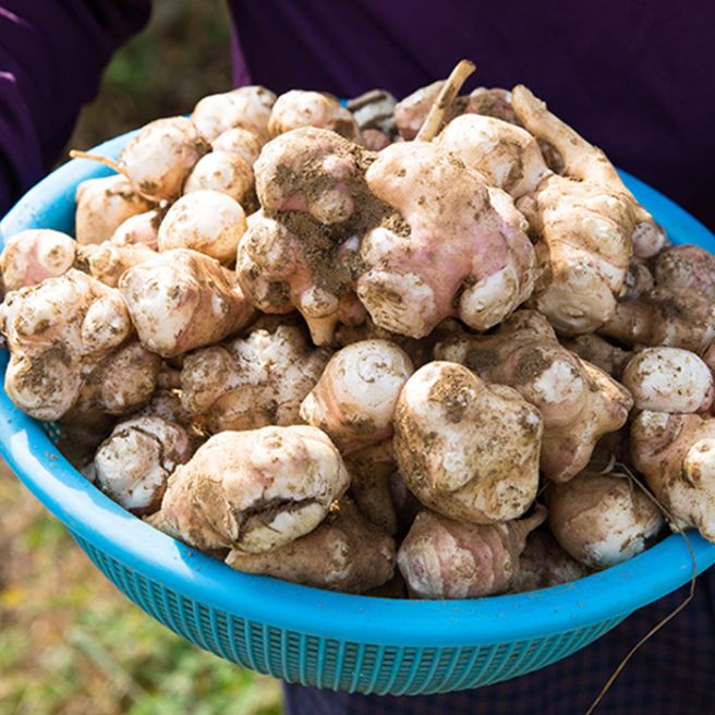 돼지감자는 국화과에 속하는 식물로 녹말이 감자 모양의 덩이줄기 형태로 열매를 맺어 있어서 돼지감자라는 이름이 붙었습니다. 과거에는 인기가 없어서 가축의 사료로 많이 사용되었답니다 우리나라에서는 뚱딴지라는 이름으로 알려져 있어 돼지감자 차로 즐겨 뭐도 했습니다.